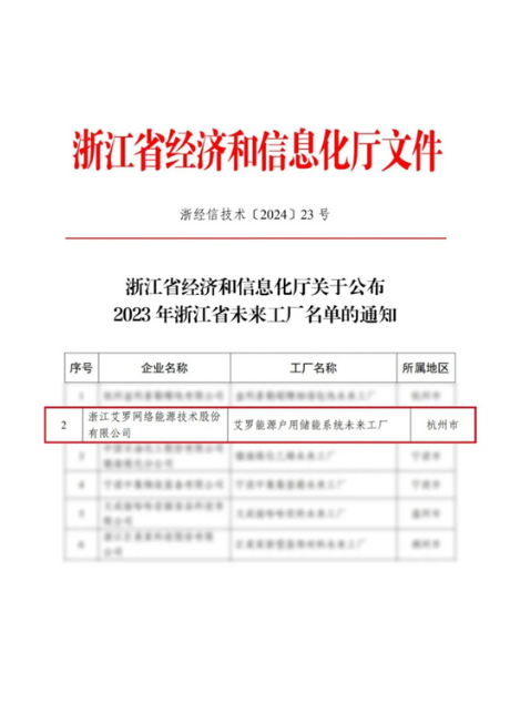 “304am永利能源户用储能系统未来工厂”上榜浙江省未来工厂